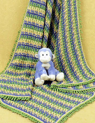 This beginner crochet baby blanket is perfect for baby girls and boys. This Sheina Baby Blanket is an adorable striped afghan is soft and warm. The fringe around the border is a playful detail that strikes just the right note for a nursery or child's bedroom. The green, blue, and yellow color scheme is gender neutral yet delicate, so boys and girls will be happy with this easy crochet baby blanket. Best of all, even after your little one outgrows this afghan, it will be a treasured keepsake.
