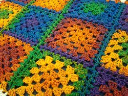 Join together brightly colored granny squares to complete this stunning Rainbow Granny Afghan. This multi-colored granny square blanket will brighten up any room in the house. Grab an I hook and 14 balls of Bernat's Mosaic Yarn, and you're all set! This colorful crochet pattern is great for the summer months. Even if you're a beginner crocheter, you'll be able to master this granny square pattern in no time. Choose your favorite colors and make a granny square afghan that will last a lifetime.