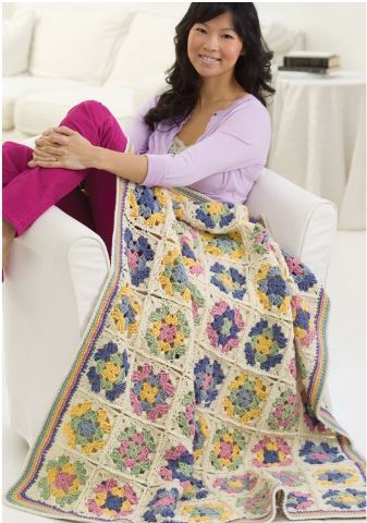 This easy free crochet pattern comes to you from Red Heart. Their Versatile Flower Granny Afghan is great for beginning crocheters and those who have little experience with granny squares.