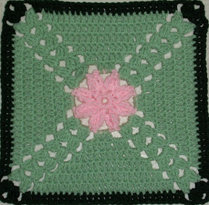Crochet the way Monet once painted and make your own Monet's Lily Square. Learn how to crochet a small flower and surround it with brush stroke-like crochet stitches. Pretty pastel colors are framed by a black border. This free crochet granny square pattern uses a variety of cluster stitches.