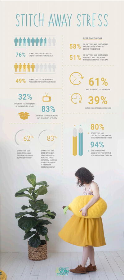 Our friends over at the Craft Yarn Council are launching an initiative this month to remind people why it's good to stitch away the stress. The infographic below will show you just why crocheting (and knitting!) is so beneficial!