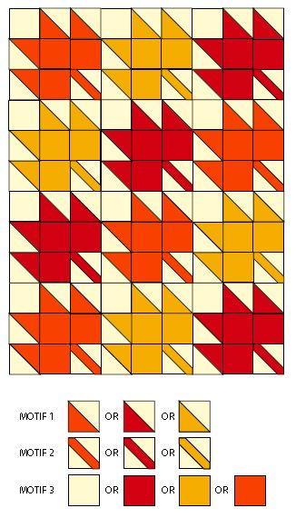 Make 48 Motifs: 16 each with A, B and C as Color 2.