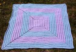 This is another very simple blanket to make for baby. I love the square shape and how the stitches have been designed to follow the square. I also like the baby pink and baby blue color combination used here. Love it!