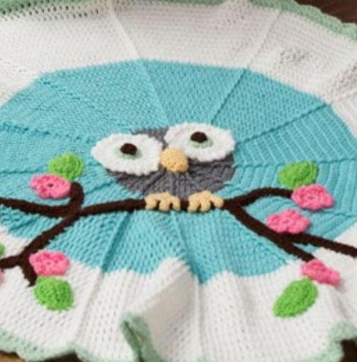 Whoo's ready for the cutest round crochet pattern out there? This Cutie Owl Crochet Baby Blanket will blow you away. An amazing owl crochet applique is accompanied by adorable flowers and branches to make the best picture crochet baby blanket pattern ever.