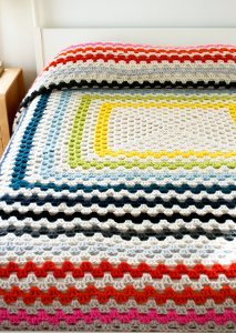 I have made giant granny square blankets before and I like this because it is more of a bedspread. I like the color design of this because of the contrast between the bright colors and the light backgrounds. I do like the patterns from Purl Soho. They are very well written and come out looking great. Thank you.