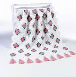 OMG! Beautiful. My favorite color, pink. This blush-rose floral afghan is really stunning. I love everything about it including the tassels. The designer placed a lot of work in this and I am grateful for the free pattern.
