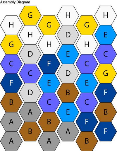 HEXAGON (make 42 – 4 with D; 5 each with A, E, F, and G; and 6 each with B, C, and H)
