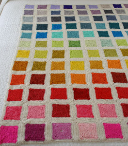 I like the simplicity and predictability of this Rainbow Granny Square blanket. The color scheme is very simple. It's like laying bricks on a floor. I think this will look great if the squares are all colored terracotta to mimic the color of bricks. haha.