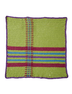 Great colors that works up quick using super chunky and a size M hook. Simple weaving for the vertical stripe. Don't let the reverse single crochet scare you, it is easy once you get the hang of it. There are tutorial videos available to watch. Pick colors to fit your decor, or for the Holidays, or for your favorite TEAM. The possibilities are endless.