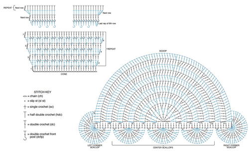 Center Scallops: With RS facing, join yarn with sl st to first marked st at Bottom Edge row.