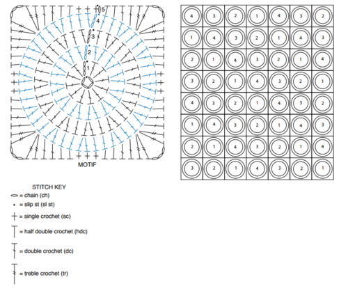 Crochet Gauge12 dc and 5½ rows = 4" [10 cm]. Motif = 8" [20.5 cm] square