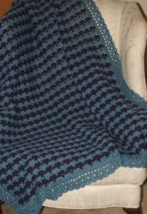 Calling all crochet shell stitch fans! When it comes to stellar shell stitch crochet patterns, you can't go wrong with the Regal Fans Crochet Afghan. This beautiful pattern uses navy and royal blue to make a uniquely patterned afghan in your favorite stitch. The contrasting shades of light blue and dark blue create a pattern reminiscent of houndstooth. The lacy border is just the cherry on top of this delightful pattern. When looking for a fun new pattern to try, give the Regal Fans Crochet Afghan a go!
