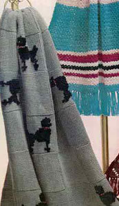By the time you're done with this pretty French Poodles Crochet Afghan, you'll want to pull out your old poodle skirt and twirl around! This free crochet afghan pattern uses a Size I crochet hook and worsted weight yarn. Each crochet square is embroidered following the chart provided in the pattern. Add little rhinestone eyes for the finishing touch!