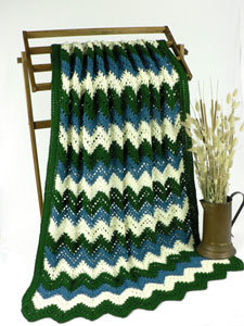 Combining blue and green yarn gives this ripple crochet afghan pattern its name. This Land and Sea Throw takes the best of both settings and puts them into a design that's both classic and masculine. The playful chevron style of this afghan keeps this blanket interesting, yet it's easy enough for beginner crocheters to tackle. Like water reaching the shore, this chevron crochet pattern is relaxing. Make one for the special guy in your life so that he can stay warm and cozy even when you aren't nearby.