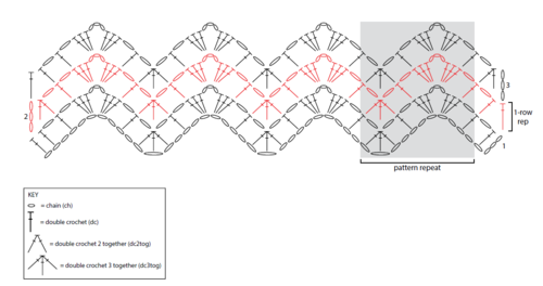 Crochet GaugeOne pattern repeat = 3¼" [8 cm]; 5 rows = 4" [10 cm] in pattern stitch.