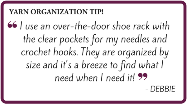 - "I use an over-the-door shoe rack with the clear pockets for my needles and crochet hooks. They are organized by size and it’s a breeze to find what I need when I need it!" - Debbie