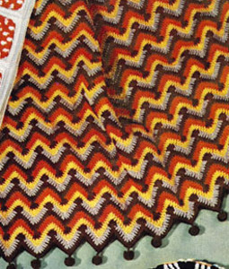 Step into a time machine with this crochet blanket pattern! That 70s Afghan is both groovy and comfortable. The chevron ripple crochet pattern that adorns this blanket makes it easy to crochet and infuses it with a mellow vibe. Its orange and brown color scheme screams classic seventies and will give any room a vintage twist. An adorable pompom border completes the look. This blanket will take you straight to your parents' basement!