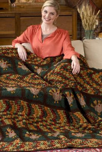 - RED HEART® Super Saver®: 1 skein 360 Café A; 9 skeins 981 Fall B; 2 skeins each 633 Dark Sage C and 365 Coffee D; 1 skein each 254 Pumpkin E and 376 Burgundy F