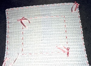Please note. If you do make an afghan with ribbon, be sure to tack the ribbon down so baby will not have a strangulation hazard. I had made a blanket for my son and I found him tangled up in the ribbon. Thank God I found him before he was injured!