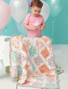 Oh, is this not just the most gorgeous blanket for a little one? The colors make me think of a beautifully iced birthday cake. Fortunately there are currently several new babies in my circle of family and friends so I have no less than 4 excuses to make it, lol. I have not seen the Bernat Dippity Dots yarn here in South Africa but I am going to look for it online right now!