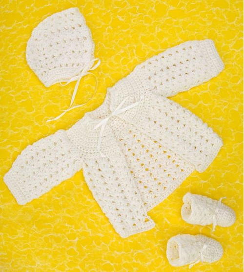 Truth be told this does not have to be just a Christening blanket and layette set. You can select any color of the rainbow to crochet this and you would simply have a matching set for any baby.
