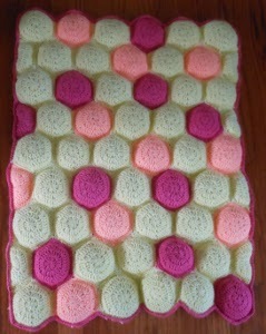 I love the deep pink with white here and the way the hexa puffs are done came out so beautiful you'll wonder what those round things are. Will look good also in other colors you fancy.