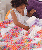 The alternating textures in this Kid's Digs crochet afghan pattern give this blanket interest and depth. The multicolor accents look like confetti against the white yarn, creating a fun and playful blanket for your child. Because it's so soft and warm, little ones love to use this blanket when they curl up for a nap. It also makes a great covering for an indoor fort. Let your own imagination run wild with this crochet project for beginners, and then watch your children do the same.