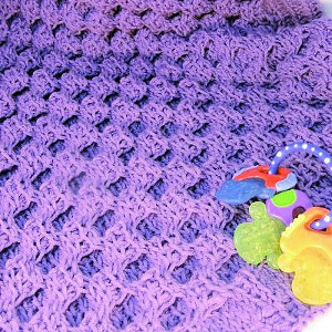 If you're a new mom, try rocking your baby to sleep in the wonderful Lilac Love Crochet Baby Blanket. An assortment of different crochet stitches gives this crochet baby blanket pattern a one-of-a-kind cabled texture that your baby will love to sleep on. Tunisian crochet stitches and the crochet cable stitch create an interesting honeycomb design. With a beautiful lilac purple, this easy crochet blanket will be an adorable addition to your child's crib.