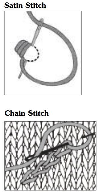 Notes: To change colors, work to last 2 loops on hook. Drop previous color from hook, draw new color through and proceed.