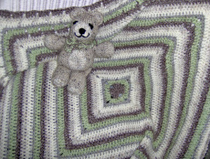 Make an easy baby blanket with pleasing colors when you crochet this Taupe and Green Striped Baby Blanket. This crochet baby afghan begins with a granny square. Simply crochet your granny square and work outward until your blanket is the desired size. The blanket alternates stripes in various shades of green, taupe, and cream. Because of its neutral colors, the blanket is a perfect gift for a baby shower, especially if the mother doesn't know the gender of her baby yet. Gift a baby blanket that any mother is sure to love.