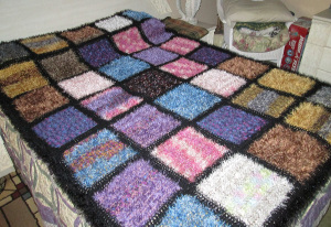 This is a nice warm blanket for a childs room. Soft like a teddy bear. This would also make a nice texture blanket for someone who has sensory needs. As another member mentioned, adding a regular yarn to work with double strand will make it a lot easier to find your stitches. I would use a light yarn though. A bulky yarn would take away from the eyelash yarns.