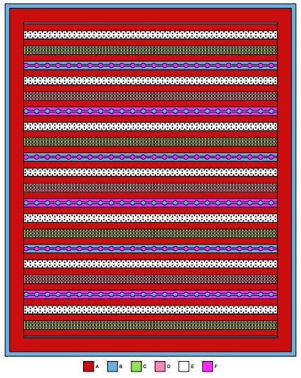 - RED HEART® Super Saver®: 4 skeins 319 Cherry Red A, 2 skeins 512 Turqua B, 1 skein each 672 Spring Green C, 706 Perfect Pink D, 316 Soft White E and 718 Shocking Pink F