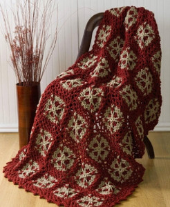 Get into the Christmas spirit with this wonderful Christmas crochet throw. When it comes to crochet afghan patterns, the Christmas Snowflakes Crochet Blanket Pattern is one of the most warm and festive. A rich, Cabernet red is the perfect color to add a little seasonal spice to any room. Better yet, the snowflake motifs will remind you of a winter wonderland! This free crochet pattern will add rustic touch for a perfect country Christmas look.