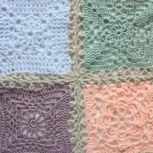 OMG. I just love the pastel colors. The design for the granny squares used are very appropriate. This is perfect for a girl's room or a baby's room. Grandma and mom will love this, too when made into a bedspread. Wow. I wish I could make this one. I like the light brown in between the squares. Love it!!