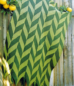 This Tribal Arrows Afghan reminds me of the bamboo plant especially it color and shape. It symbolizes the part of the plant that produces food. Green stands for clean and green environment. The leaves design has very clean lines, very defined, and the color combination of light and medium green is very well defined. For a tribal design this would also look great in vibrant colors typical of Indian tribe designs. Cheers!