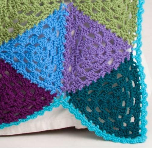 Even if you hated geometry in school, you are going to love this Vibrant Granny Triangle Throw. Who says that grannies have to square? With this free crochet afghan pattern, you will create granny triangles that are then worked together into this colorful crochet throw. The way the triangles fit together even creates several hexagons on this lightweight blanket. Drape it on chairs or couches in your living room so that you'll have a little warmth when the temps decrease. Or simply keep is as a room-brightening decoration.