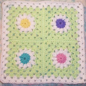 Celebrate the start of spring with this Four Patch Daisy Granny Square. Featuring a floral motif, this daisy crochet pattern is an easy project to make on a warm afternoon. The daisies on this square are beautifully detailed, and each flower has a different color center. Varying the colors adds a touch of whimsy to this precious square. Gather up your pastel yarn and give this granny square a try. It's perfect for Easter decorations, too.