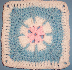 The Baby Flower Square uses a simple circular design to create a circular flower shape. Learn how to crochet granny squares like this and you can join them into a soft baby blanket. You can even try more vibrant colored yarn to make these flowers really "pop" and make a statement. These squares would also make a flowery pillow.