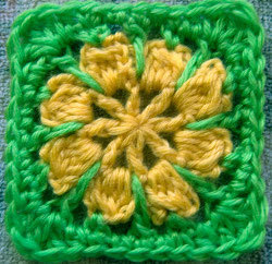There's no reason to crochet a boring flower crochet square - try the Brilliant Flower Crochet Square today! This easy granny square pattern has a flower center that starts with a magic circle and eight petals. Finish off the crochet square with green yarn to represent leaves or grass and you'll have a garden of brilliant flowers to create a granny square blanket for spring.