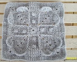 I love Dragonflymomof2s designs. Her patterns are always so clear and easy to follow. The only things I didnt see on this pattern were the yarn weight and whether or not it was written with US or UK standards. I assumed it is worsted weight yarn, and that it was written in US standard terminology. My completed square is 12 inches.