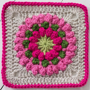 Step into a magical garden with this unique crochet flower pattern. You've never seen anything like the Popcorn Stitch Bloom Square before! This crochet granny square has it all - color, texture, and fun crochet stitches. Learn how to crochet the picot stitch and popcorn stitch to create a beautiful three dimensional flower. Bright pinks and greens make this granny square pattern amazing for spring and summer. This will definitely be your new favorite flower crochet pattern.