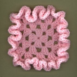 The ruffled granny square would be my choice, but I would make it larger before I put on the ruffle. Vaunda