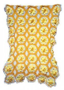 I'm reminded of mango-flavored ice cream wit h this Daffodil Afghan. I love yellow, my favorite color but this time, I did not get excited when I saw this project. It looks not drab to me, one that is not exciting to do.