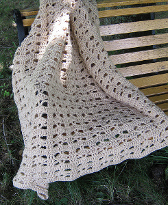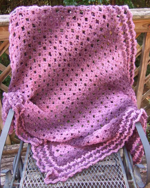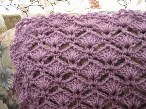 The shell stitch is one of my favourite stitches to use in items from wash cloths to afghans, like the one pictured here. It's beautiful and unisex, so it would work for just about anyone from your new baby nephew to a dear old aunt. I've used it for scarves too and it works well. This afghan is elegant and would look great in a variegated yarn or a mix of solid and variegated.