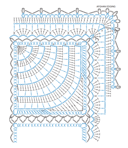 Crochet GaugeRows 1 and 2 = 1½” along edge. Square = 8” square.