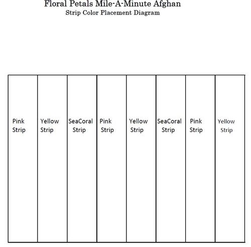 -             See Strip Color Placement Diagram. With right side facing whipstitch strips together beginning at top side edge start at first sc after ch 5, whipstitch every second stitch together making a loop around the sc joinings, end at bottom sc before ch 5 space and fasten off.