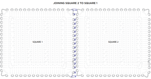 Work same as Square 2, joining each square to the previous square to complete first row of Squares, as shown in layout diagram.