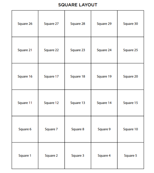 Work same as Squares 6-10 to complete sixth row of Squares.
