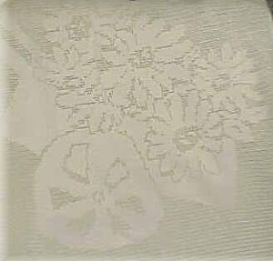 This design is a bunch of flowers on a wheel barrow. http//crochetkim.com/freepatterns/daisies-filet-af == ghan/.Wonder if we can change the color of this project. Probably so.