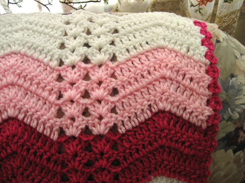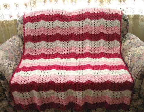 You'll quickly fall in love with this delicious afghan! If the triple stripe of light pink, dark pink, and white don't intrigue you, then the amazing shell stitch will. This is a beautiful afghan for any time of year.